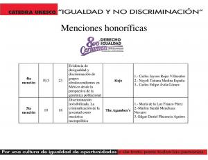 MENCIONES HONORÍFICAS DEL 8VO. CERTAMEN "EL DERECHO A LA IGUALDAD Y A LA NO DISCRIMINACIÓN EN LA SOCIEDAD JALISCIENSE:UNA MIRADA DESDE LA JUVENTUD UNIVERSITARIA.